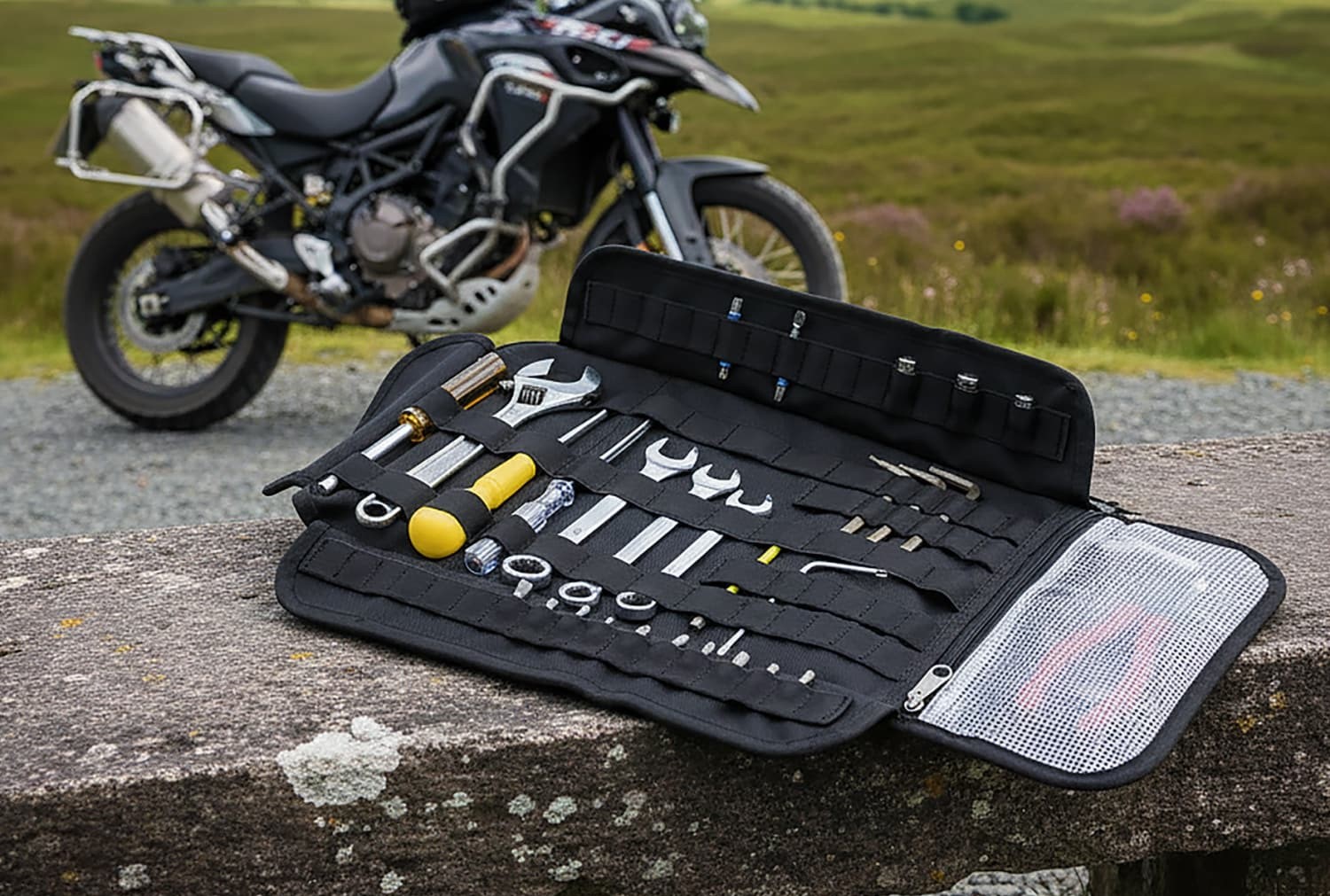 The tool roll itself is a market leader in capacity, featuring elasticated tool loops for spanners, screwdrivers, socket sets and more, along with a dedicated zipped compartment for small spares like fuses, washers, ever-useful bits of wire etc.