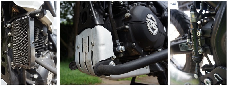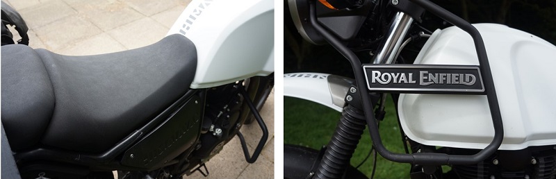 I chose not to have any incidents on the Himalayan, but Trailquest say that thankfully it crashes well and the oil cooler is protected by the standard fitment upper tank guards, which double as mounting points for the accessory bags or fuel canisters. There are aftermarket guards available for rear brake master cylinder and some barkbusters or similar would reduce the risk of bent brake and clutch levers.